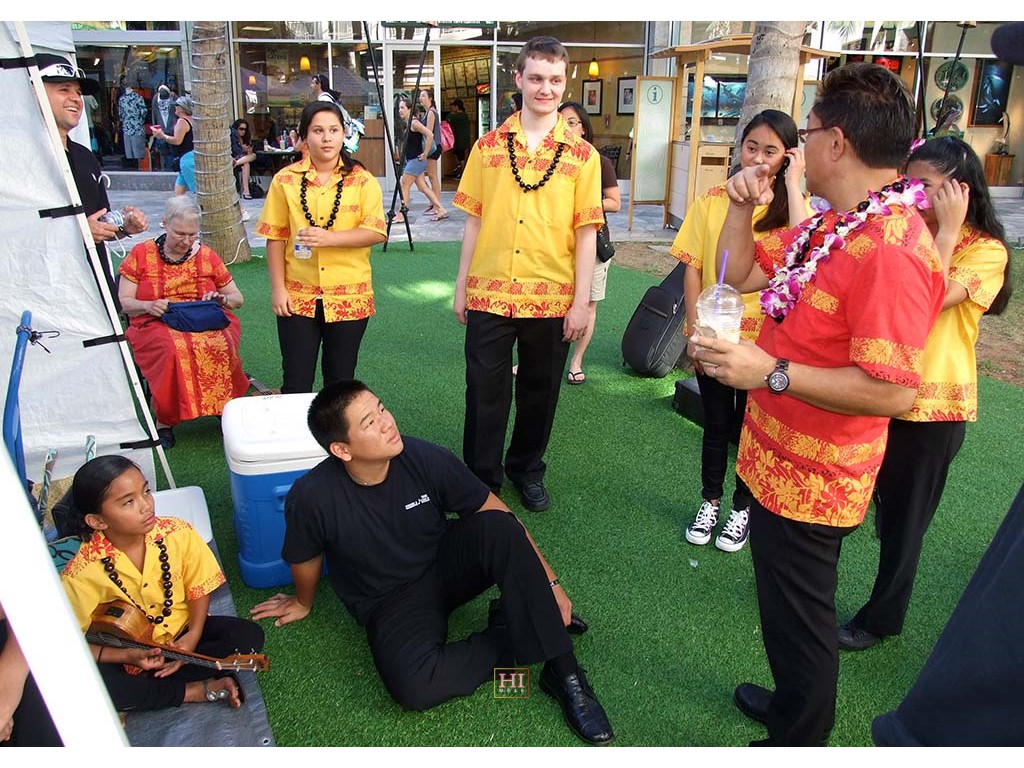 The Ke Kula Mele Hawaii ''Green Room'' with Gale Warshawsky, Kaipo Asing, Sid Pang, Kalyn Aolani, Alexis Tolentino and Lance Hylander.