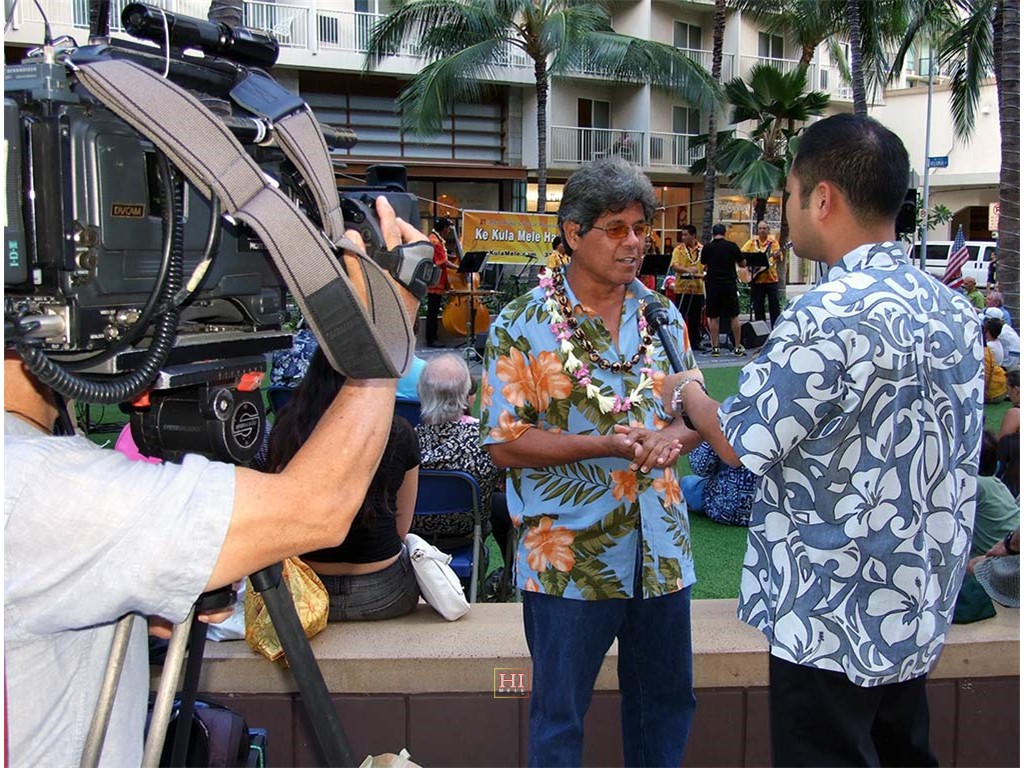 KITV reporter/meterologist Justin Fujioka interviews Greg Sardinha.