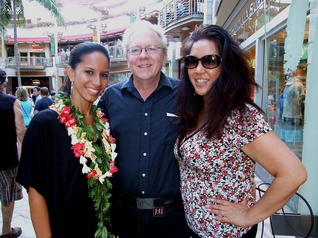 Pomaika'i Lyman with reporter John Berger and photographer Michi Moore.Back to Gallery: 2013 Waikiki Steel Guitar Festival