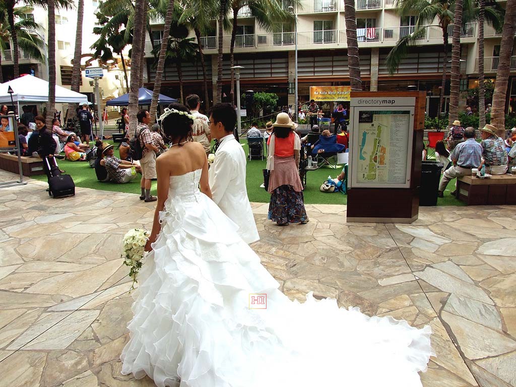 A wide angle view of the festival venue. The steel guitar exhibit tent is on the left.Back to Gallery: 2015 Waikiki Steel Guitar Festival