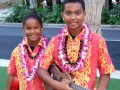 Ke Kula Mele Hawaii Ensemble players Lehua and Noah.