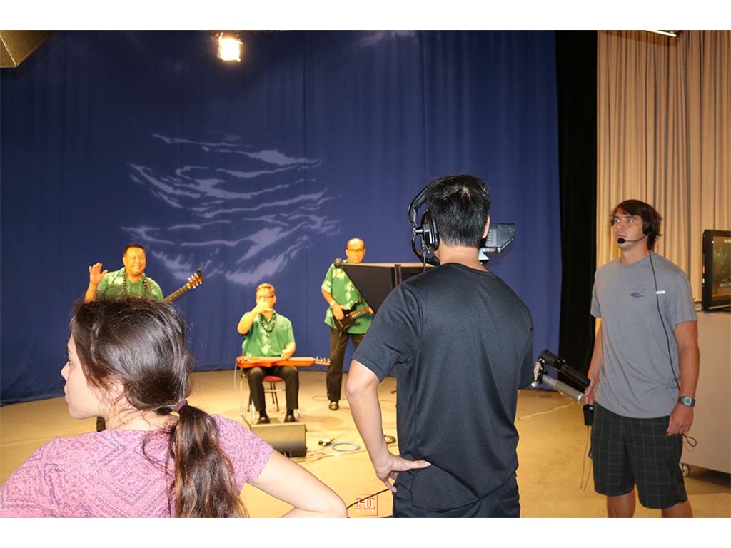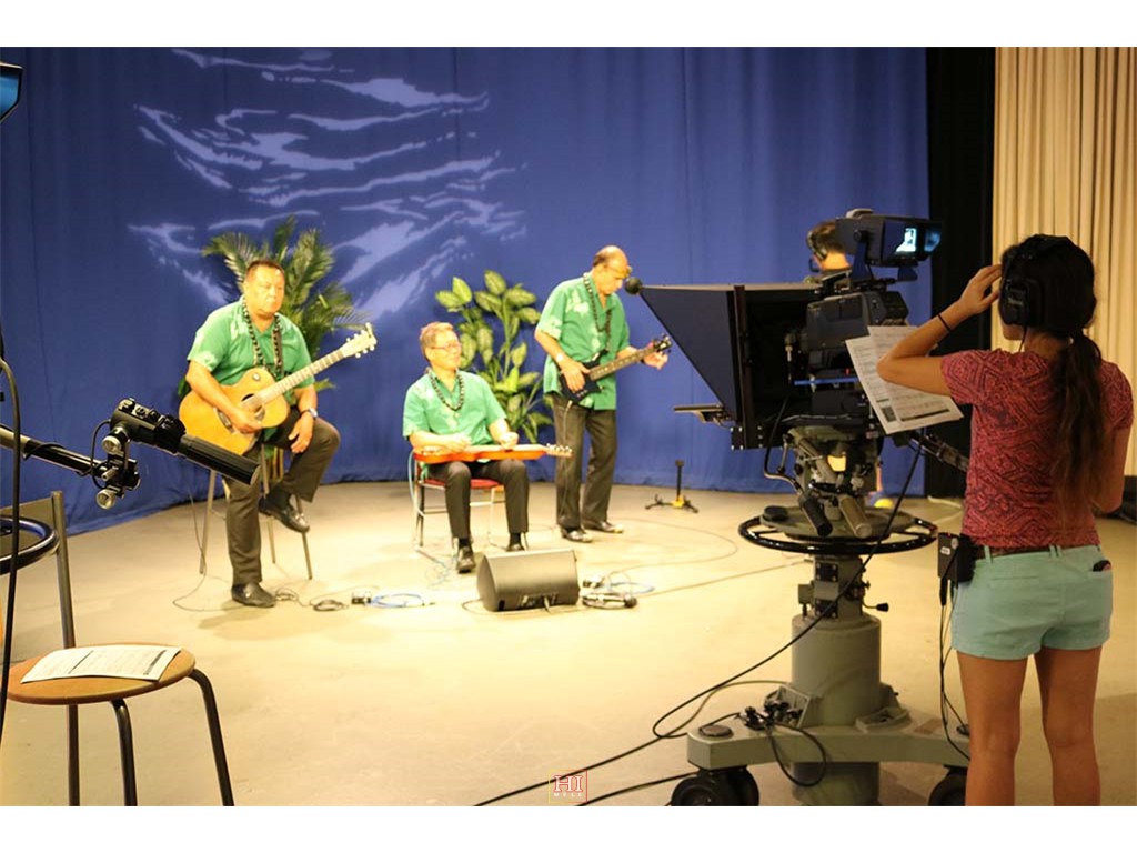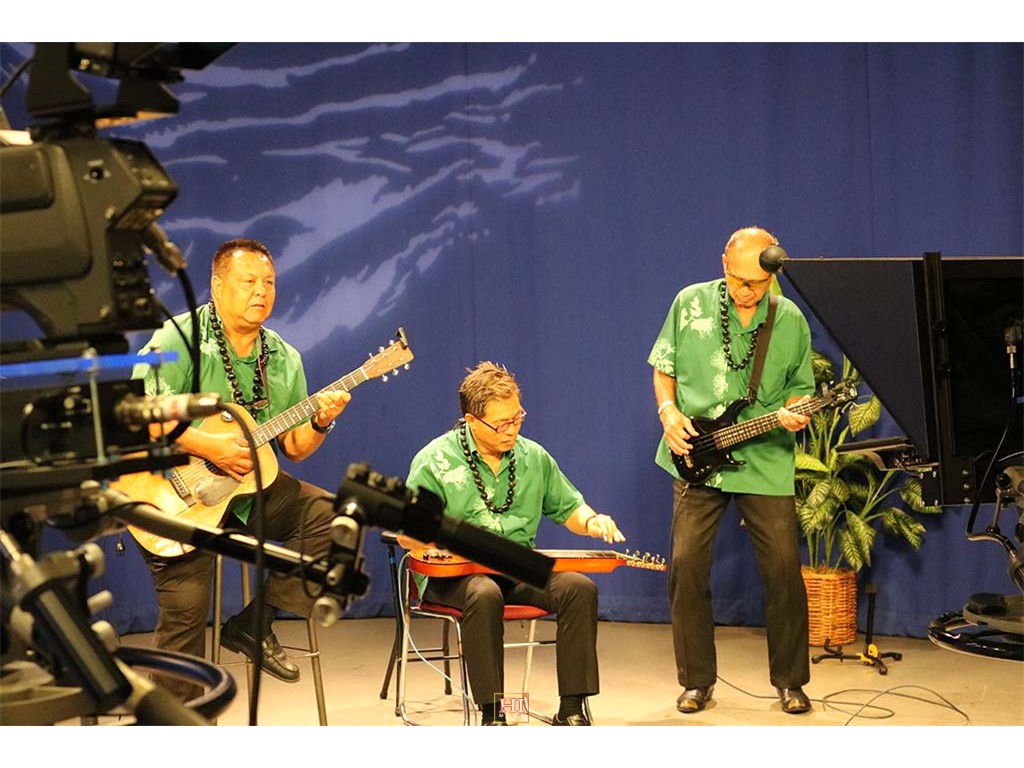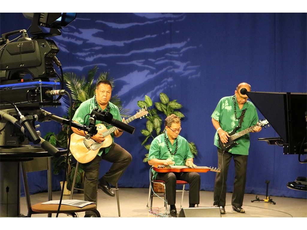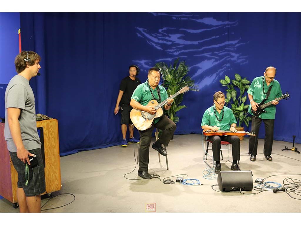 Alan Akaka and The Islanders performing a musical selection on-air.