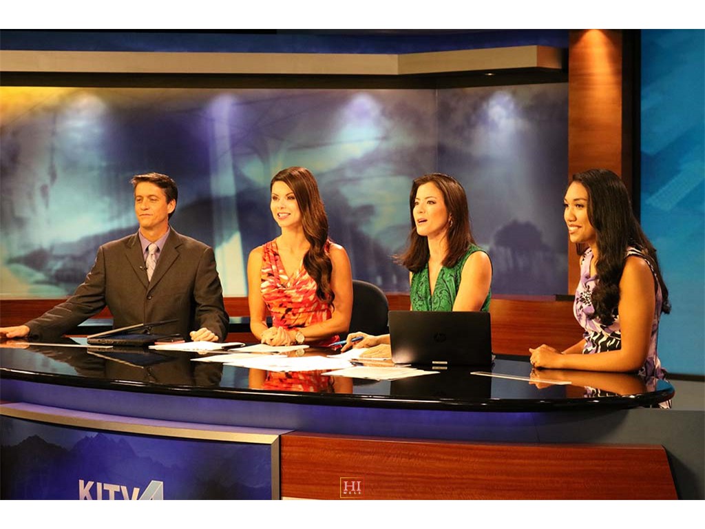 The KITV Morning News team with weather reporter Paul Drewes, Ann Sterling, Lara Yamada, and traffic reporter Lei Kaholohula.