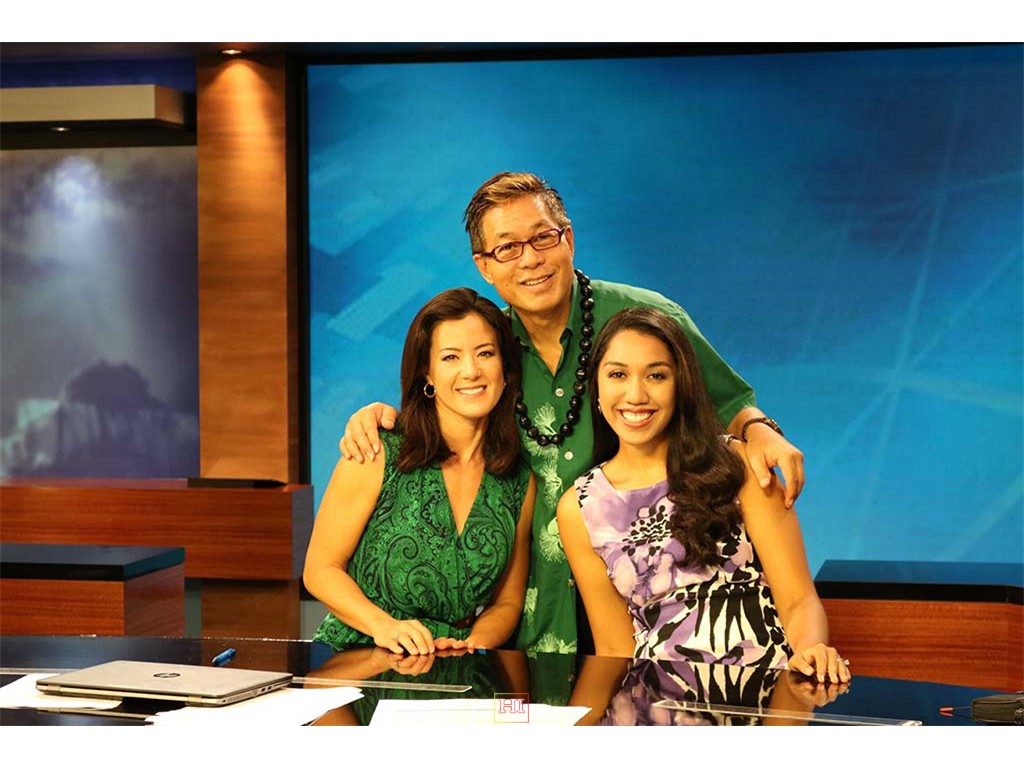 Alan Akaka with KITV News Team anchor Lara Yamada and Traffic Reporter Lei Kaholokula.