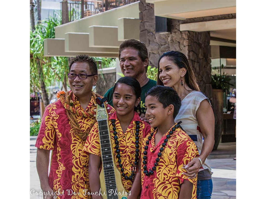 Front: Alan Akaka, Mālie Lyman, Iosepa Lyman. Rear: Eric Keawe, Pomaika'i Lyman.