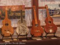 Some of the acoustic steel guitars at the vintage steel guitar exhibit in Helumoa Hale