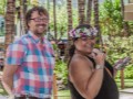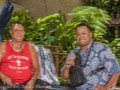 Dinner break for festival staff: Larry Holu and Alan Akaka.