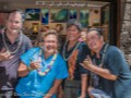 Dinner break for festival staff. From left: Don Rostow, Shirley Holu, Larry Holu.
