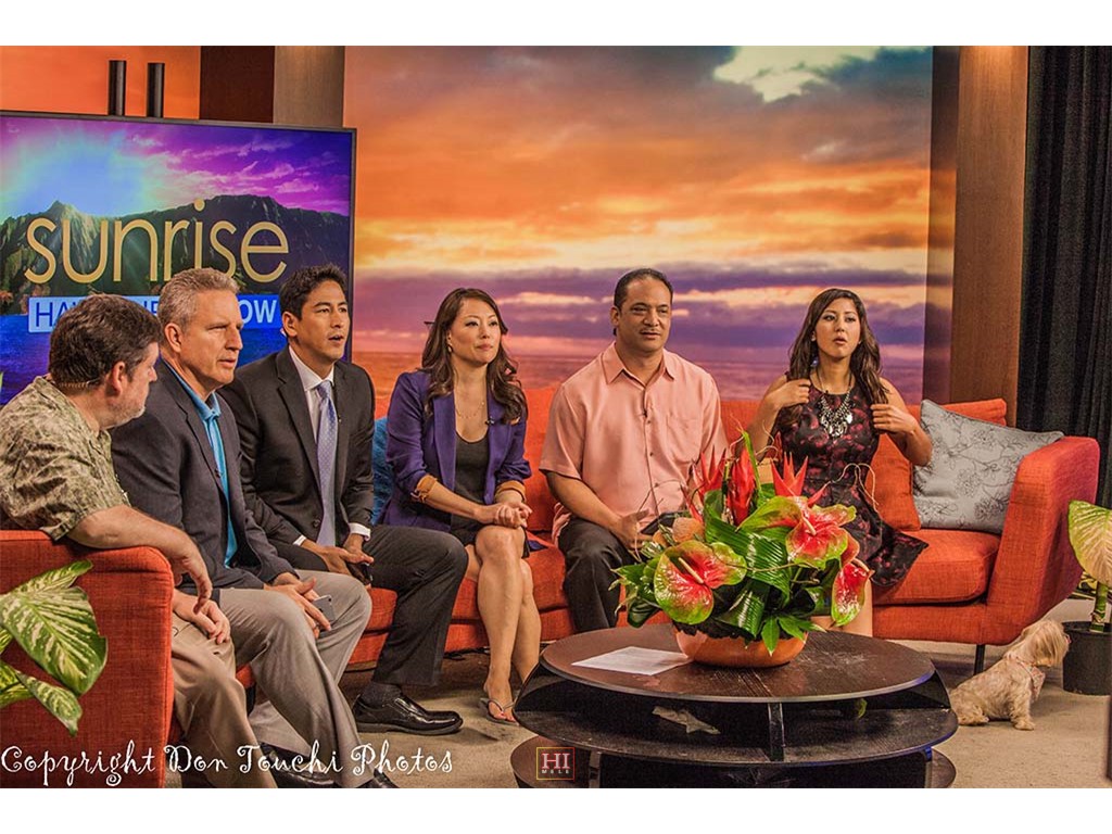 The HNN Sunrise team: Howard Dicus, Dan Cooke, Steve Uyehara, Grace Lee, BIlly V., Lacy Deniz, and Sunny.