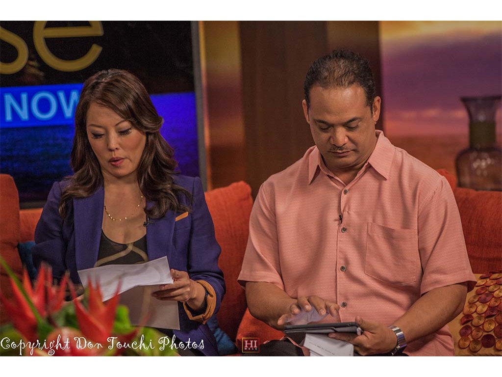 Television promotional spots for the 2016 Waikiki Steel Guitar Festival were broadcast on all major local Honolulu television stations. These photos are from the promotional segments on Hawaii News Now Sunrise.