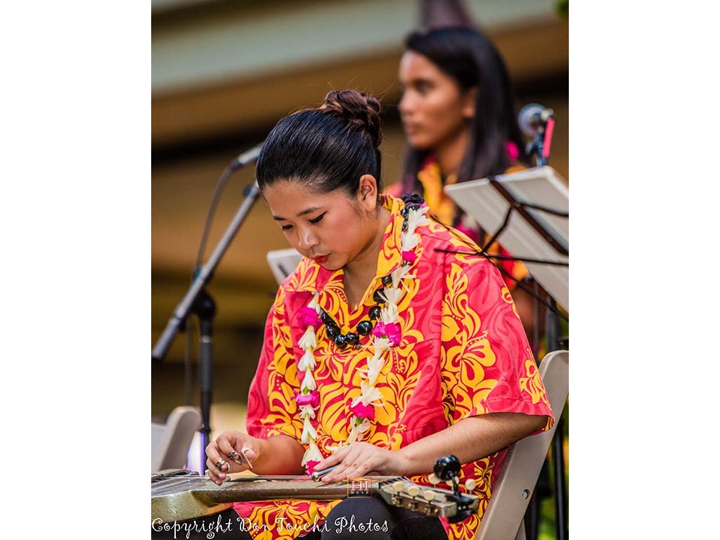 The 1st Annual Waikiki Steel Guitar Week Monday concert featured Next Generaion steel guitar students from Alan Akaka's Ke Kula Mele Hawaii School of Hawaiian Music accompanied by additional keiki ensemble students, Addison Ching, Ron Tolentino and Alan Akaka.