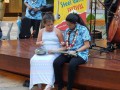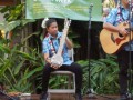 Alexis Tolentino getting ready for her segment as guitarists Alan Akaka and Addison Ching tune up.
