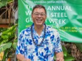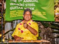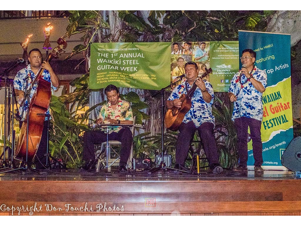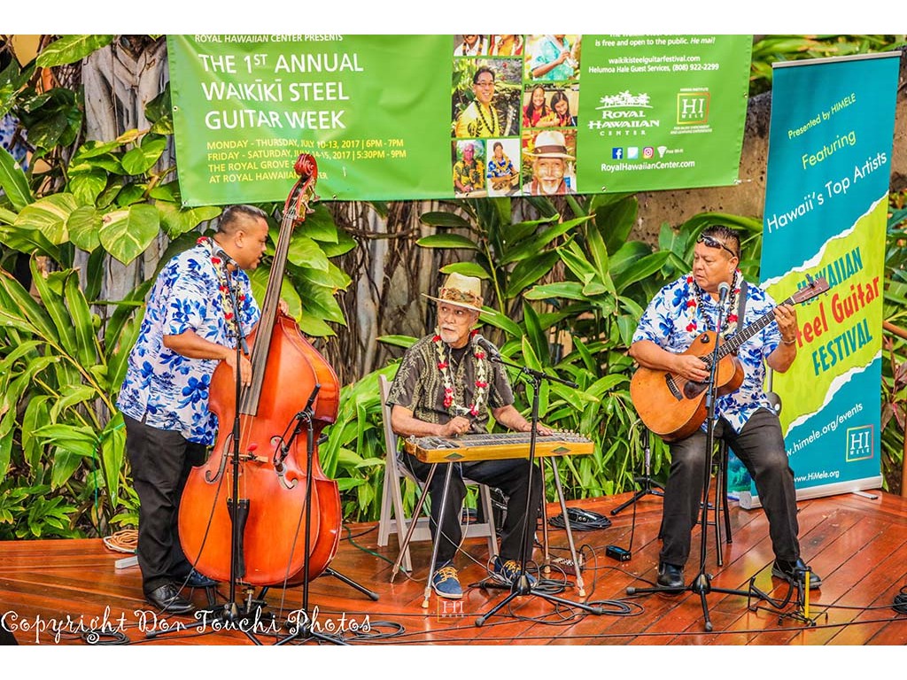 Photos of Saturday ho'olaule'a performances by featured steel guitarists Alan Akaka and The Islanders, Paul Kim and the Waimanalo Sunset Band, Eddie Palama, The Bobby Ingano Trio, and Greg Sardinha and Po'okela.