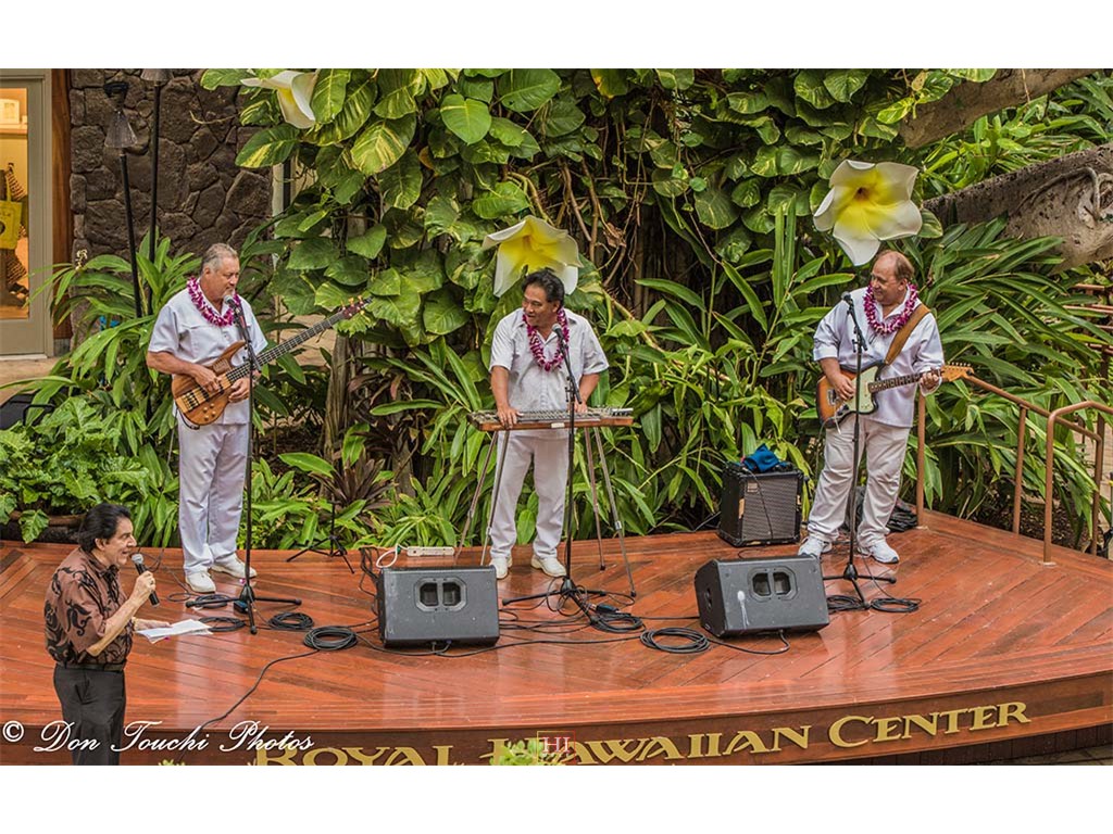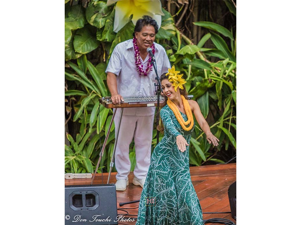 Steel guitarist Scott Furushima was accompanied by Rick Rickard on bass and Fred Kaikikea on guitar. Kiani Malie McBean provided the hula.