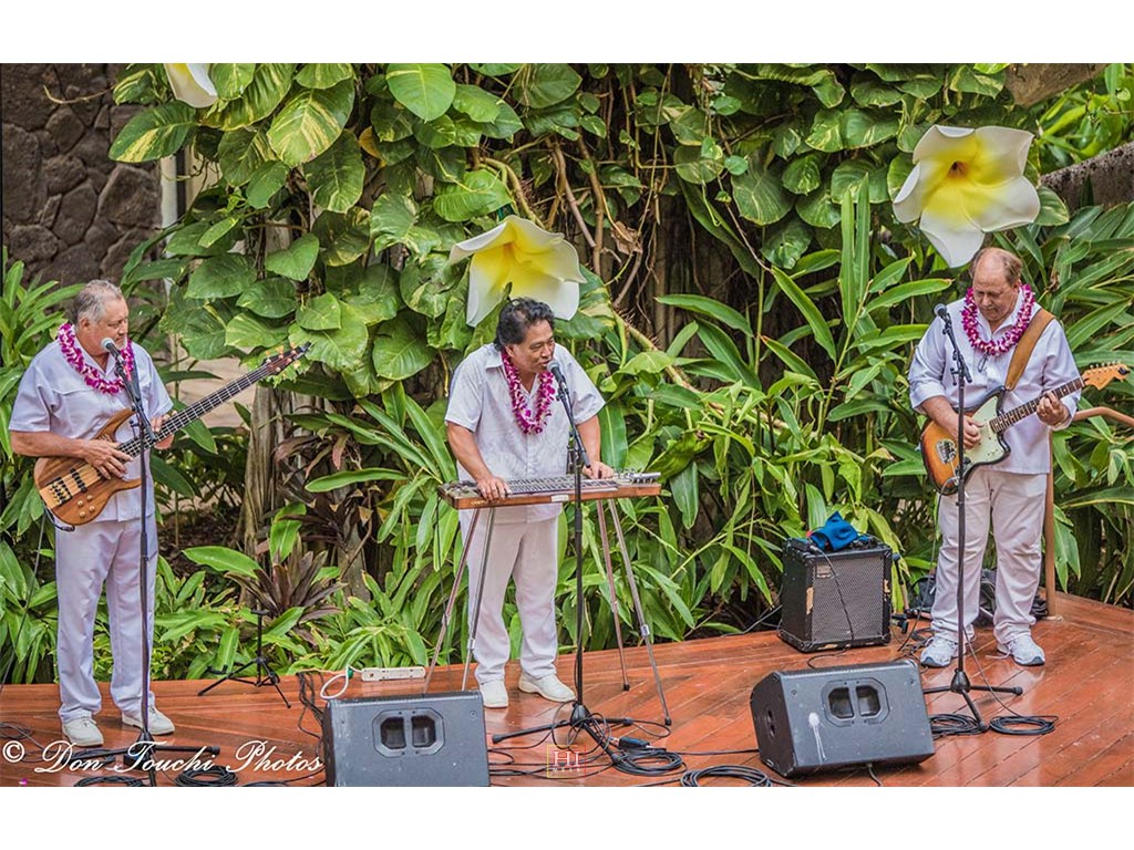 Featured steel guitarist Scott Furushima with Rick Rickard on bass and Fred Kaikikea on guitar.