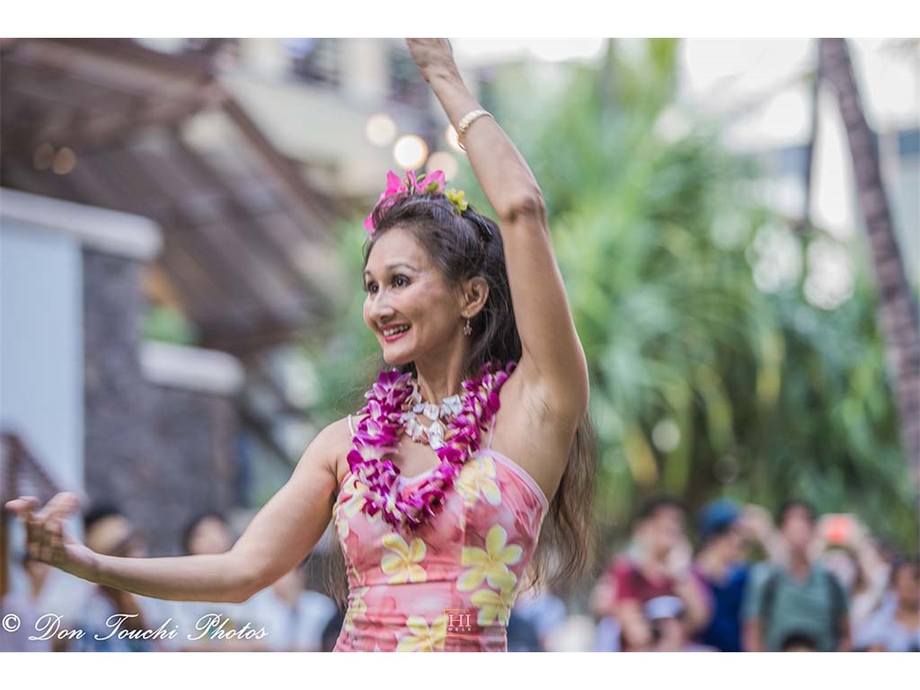 Alan Akaka and The Islanders with hula dancer Jodi Uesugi.