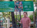 Tadashi Arakawa from Yokohama, Japan, with the festival banner.