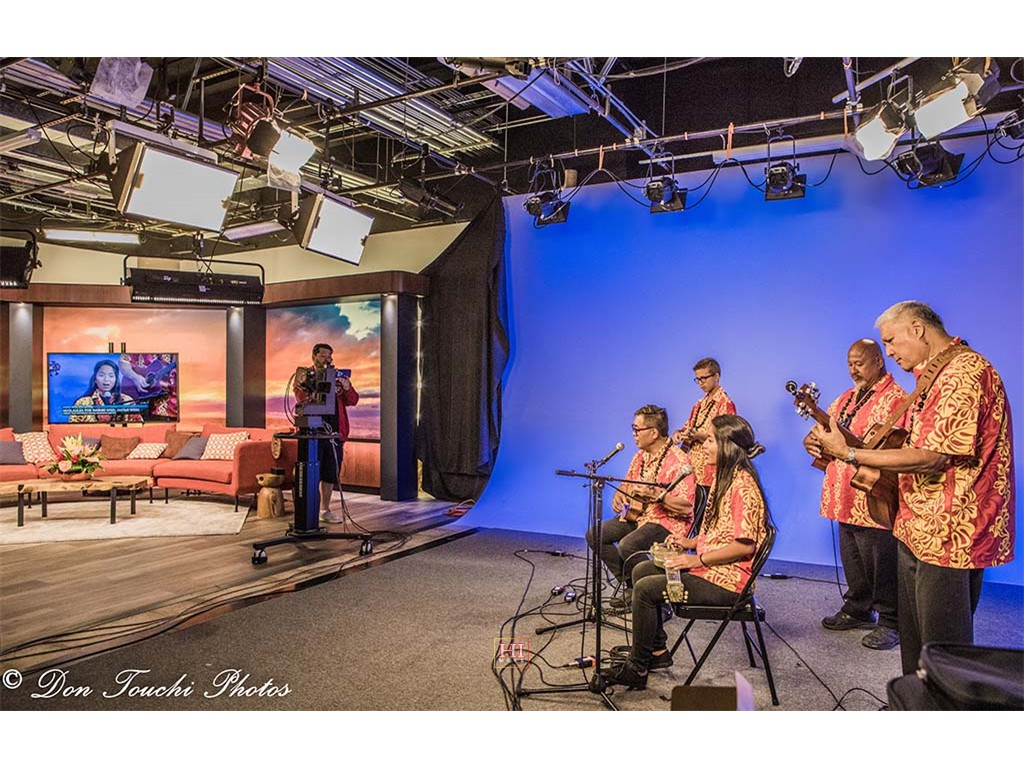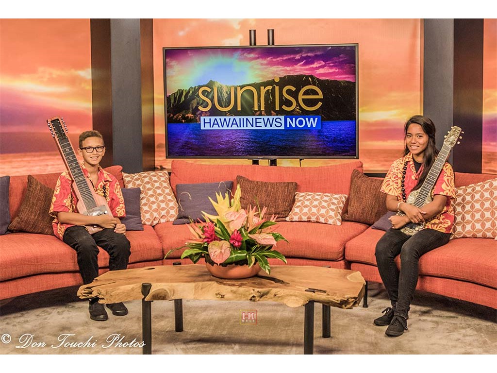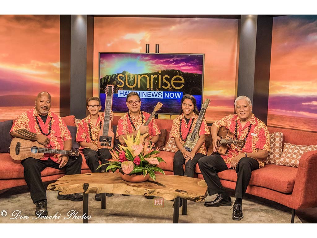 Photos of the live performance on Hawaii News Now Sunrise by Next Generation steel guitarists and musicians.