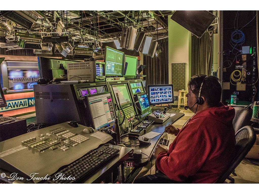 • Alan Akaka, Pono Fernandez, Malie Lyman, Larry Holu, and Addison Ching checking sound levels.