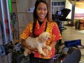 • Sunrise mascot Sunny sits at Lacy Deniz' feet.