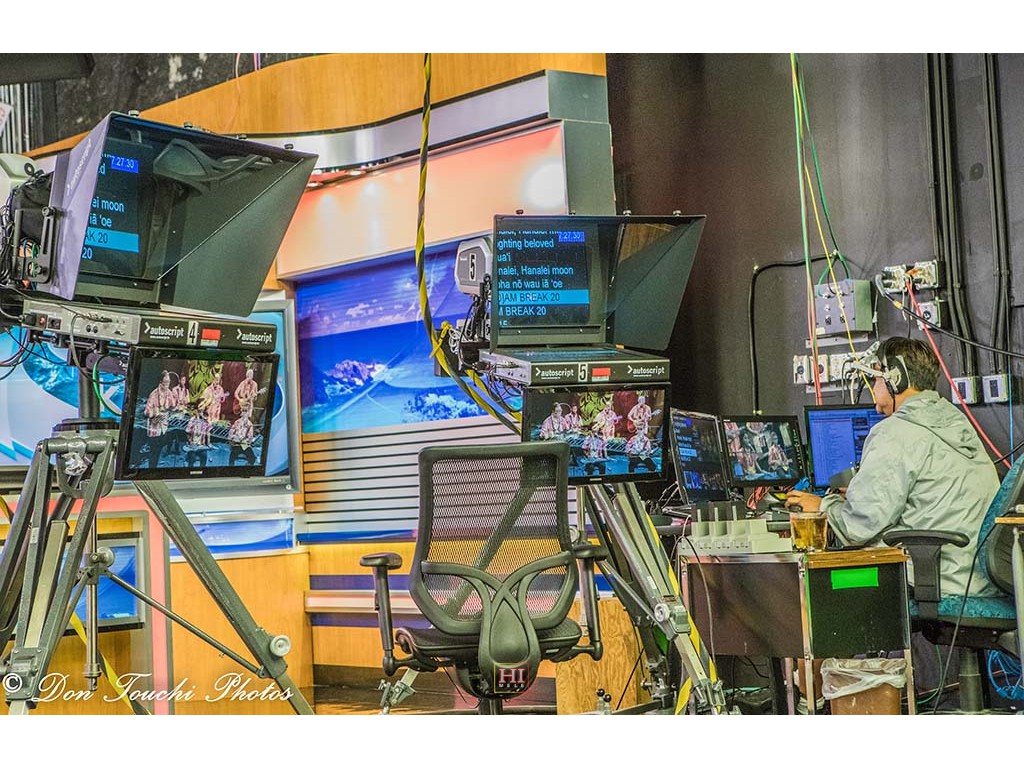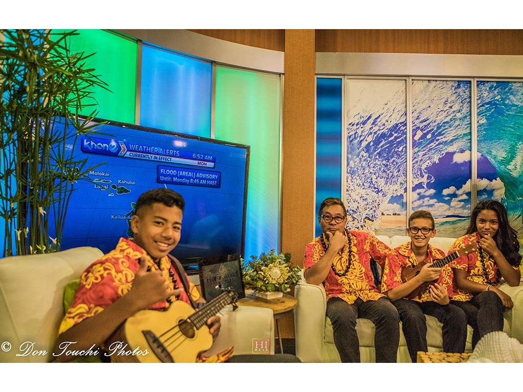 Alan Akaka and the Next Generation steel guitarists and musicians on the Living808 set.