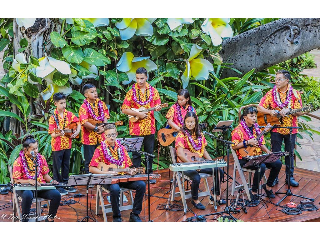 Photos of the NextGen steel guitarists and musicians from Alan Akaka's Ke Kula Mele Hawai‘i School of Hawaiian Music.