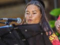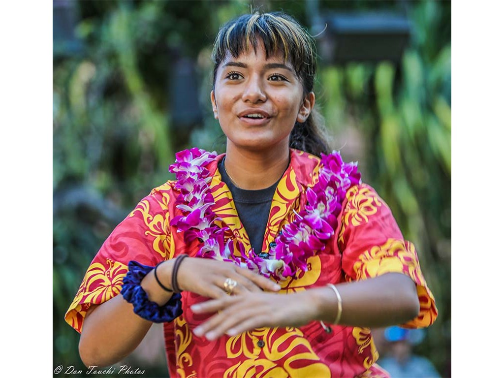 Emcee Hau'oli Akaka opened the program with a Hawaiian chant and blessing.