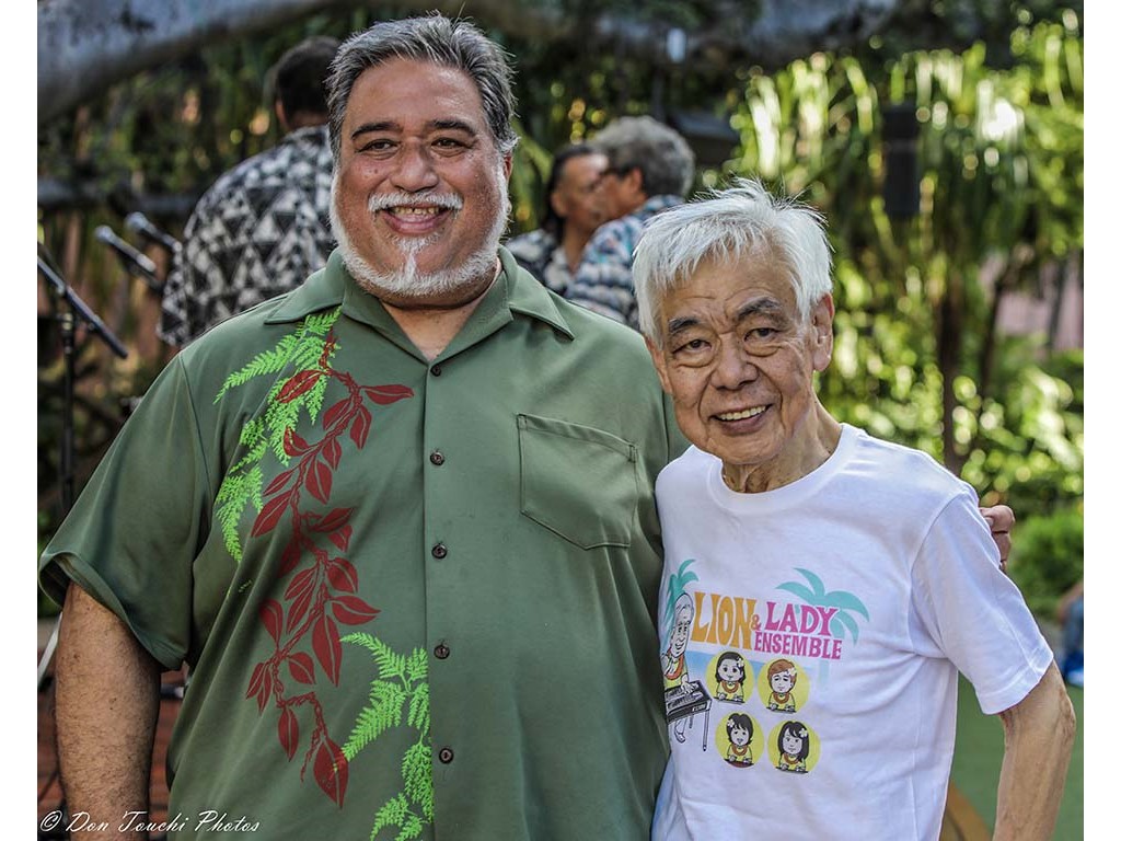 • Emcee Hau‘oli Akaka with Kiyoshi ''ʻLion'' Kobayashi.
