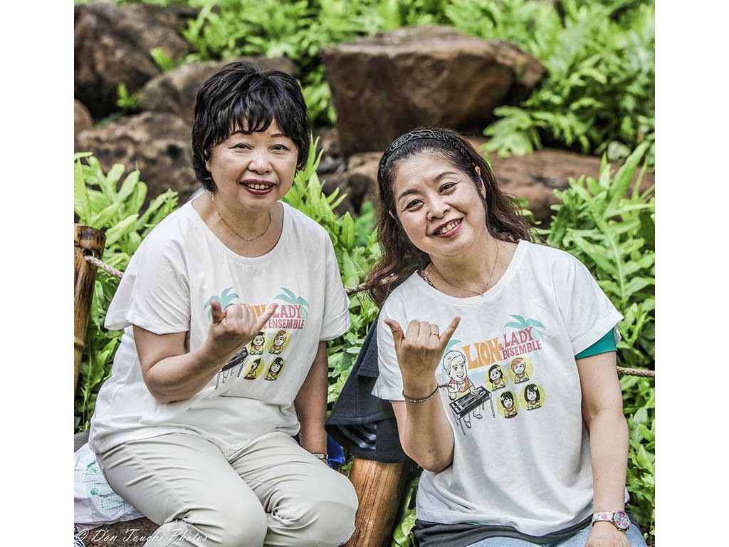 • Greg Sardinha and Poʻokela with Kapua Hayes and members of the Lion Lady Steel Guitar Ensemble: Masako Wakamatsu, Akiko Watanabe, Yoko Tanaka, Lion Kobayashi, and Sakae Machida.