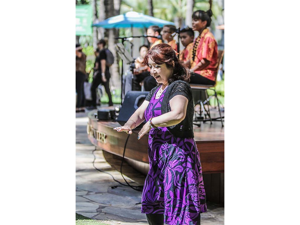 • Audience members contributed hula to the presentation. This dancer chose to dance in front of Helumoa Hale.