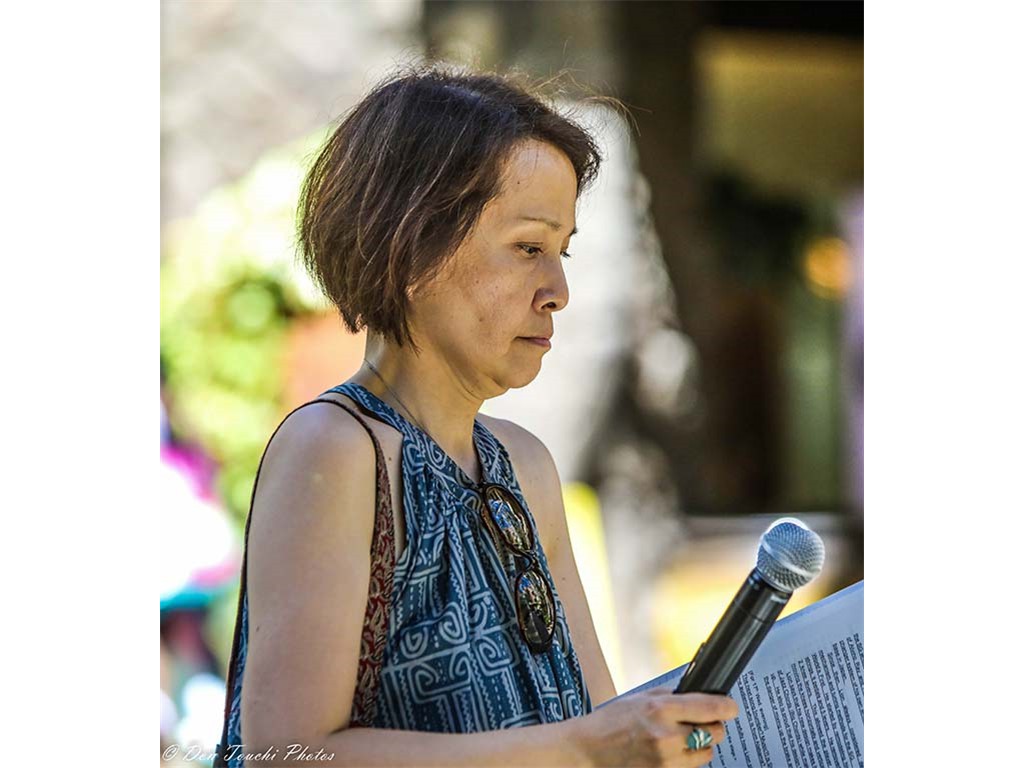 • The Lion Lady Steel Guitar Ensemble announcer Haruko Ozeki.