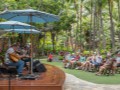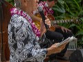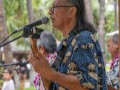 • Greg Sardinha and Poʻokela with a view of festival guests in the Royal Grove.
