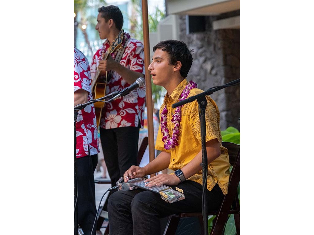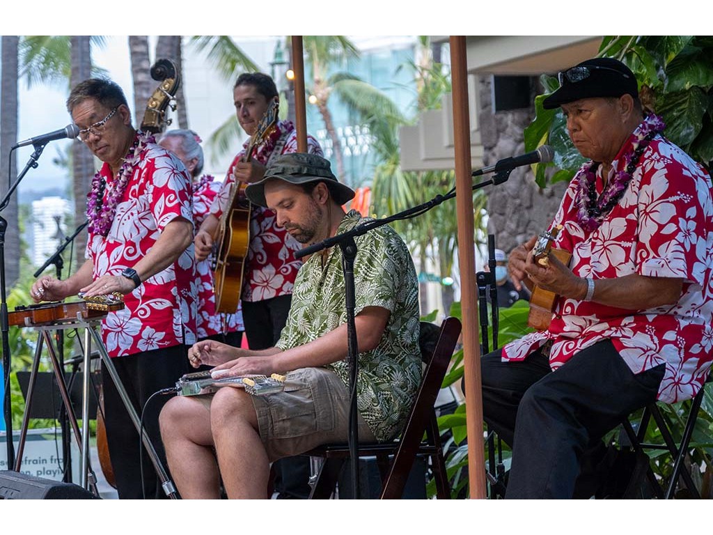 Alan closes out the 4th Annual Waikīkī Steel Guitar Week and the 12th Annual Waikīkī Steel Guitar Festival. Also in picture: Helene Woodward, Joseph Zayac, Ethan Goore, and Kaipo Asing.