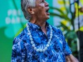 Emcee Kimo Kahoano with Japanese guests Haruko Ozeki, Masako Wakamatsu, and Kiyoshi ''Lion'' Kobayashi.
