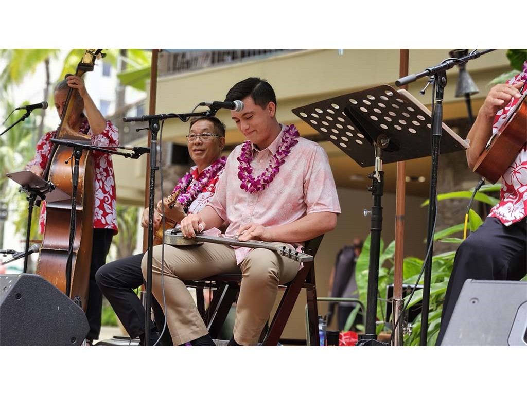Featured steel guitarist Kapono Lopes with Helene, Alan, Kaipo, and Joseph.