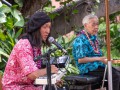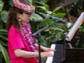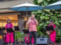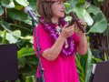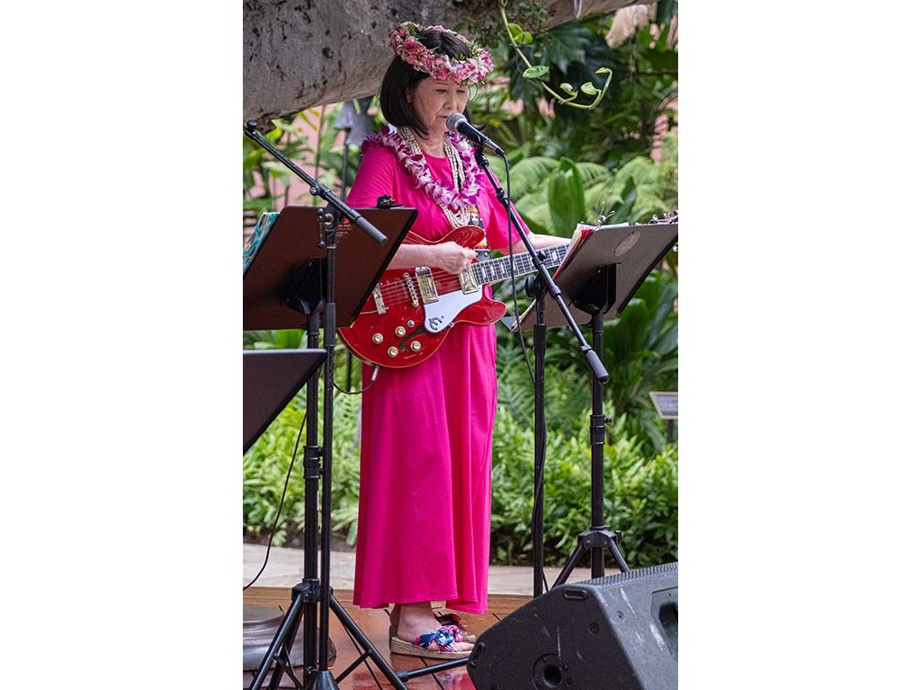 Alan Akaka stepped in as emcee for Masami Sato & Makana. From left: Masami Sato, Alan, and Ayumi Kato. Kazuko Tanaka on the steel guitar is behind Alan.