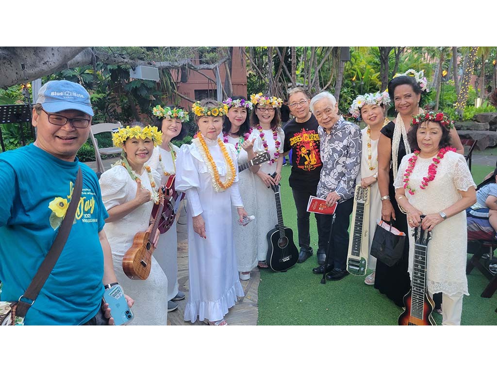 Shinichi Kakiuchi, Michiko Makiuchi, Kazukio Ishii, Masami Sato, Ayumi Kato, Yoshiko Konno, Alan Akaka, Kiyoshi ʻʻLionʻʻ Kobayashi, Masako Wakamatsu, Meleana Manuel, and Kazuko Tanaka.Back to Gallery: 2025 Waikīkī Steel Guitar Week