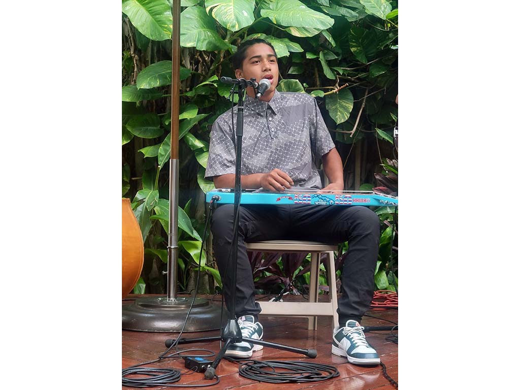 Thursday's nightly concert featured NextGen steel guitists from Ke Kula Mele School of Hawaiian Music. NextGen steel guitarists included Isaac Woodward, Hi‘ipoi Lindsey, Enosa Lyman, Ever Ta‘ala, and Tai Misailidis.