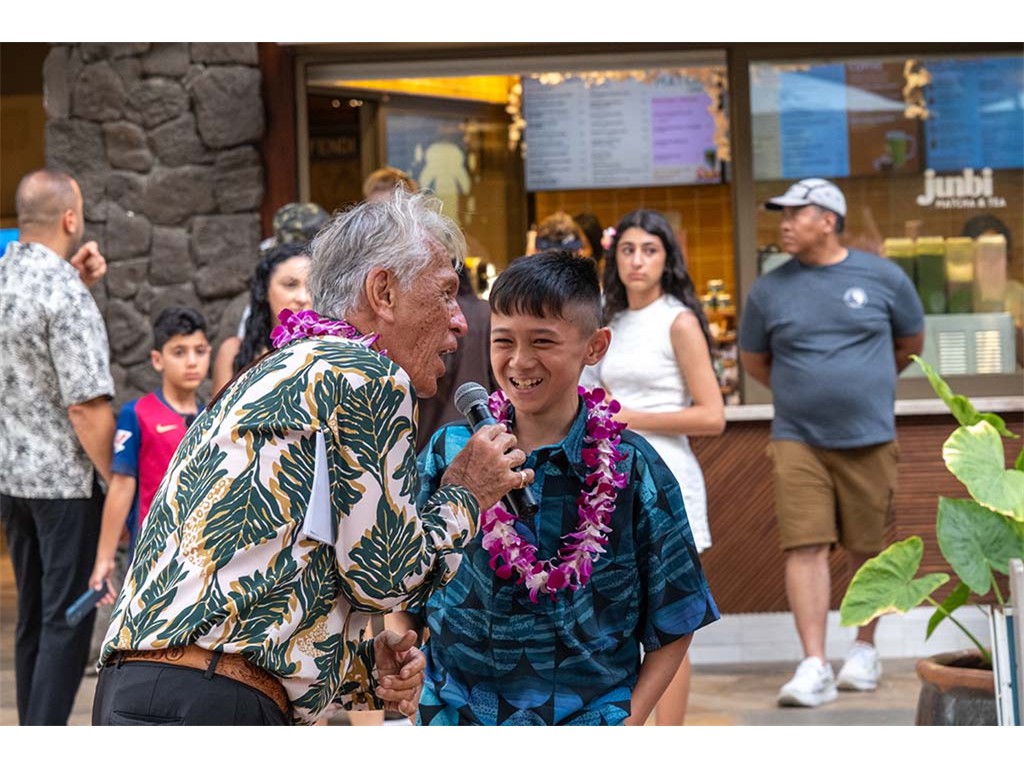 Isaac Woodward with Helene Woodward, Kaipo Asing, Alan Akaka, Bill Rhyne, and David Woodward.