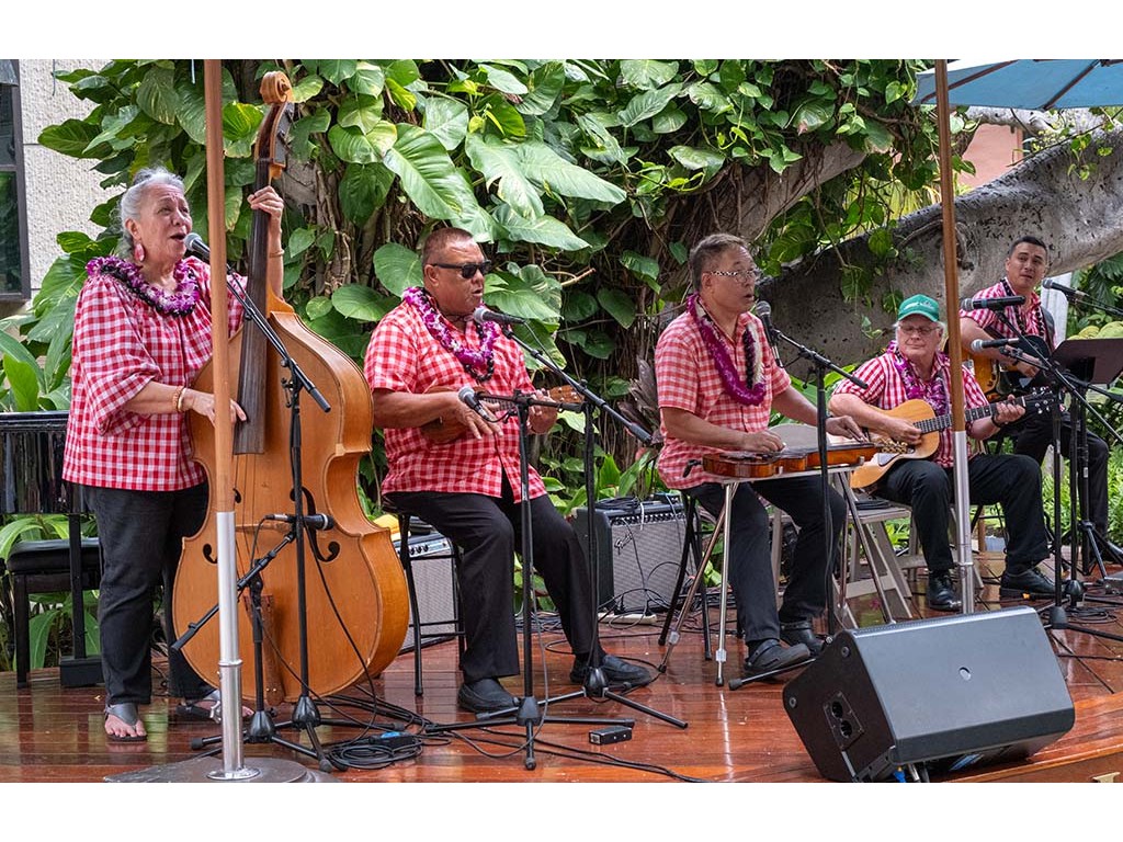 Featured steel guiitarist Alan Akaka with Helene Woodward, Kaipo Asing, Bill Rhyne, and David Woodward.