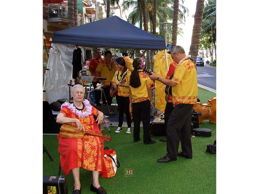 Pomaika'i Lyman with reporter John Berger and photographer Michi Moore.Back to Gallery: 2013 Waikiki Steel Guitar Festival