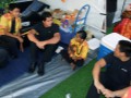 Last-minute coaching from Kumu Alan Akaka to Mālie Lyman, Gale Warshawsky, Cristina Villanueva, Sid Pang, Mark Prucha, Kalyn Aolani, and Alexis Tolentino.