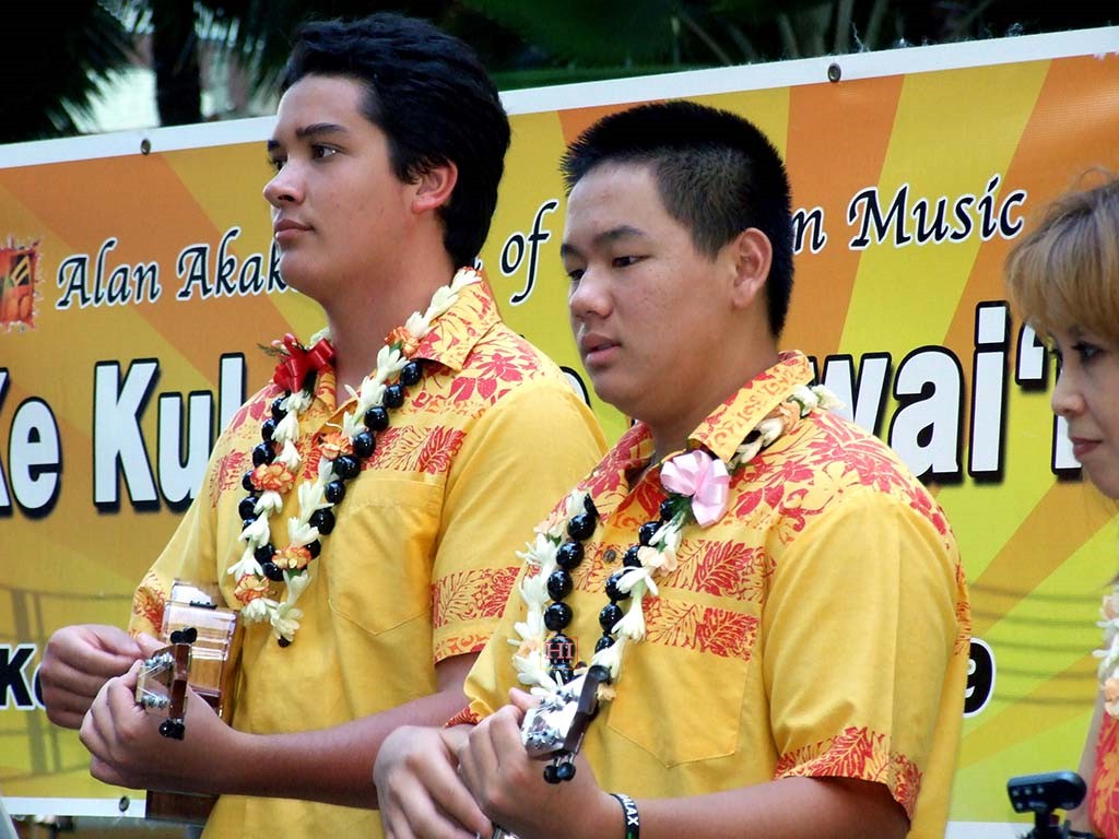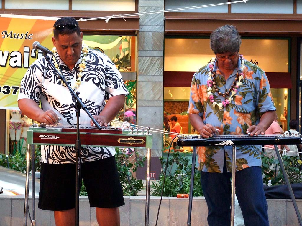 Ke Kula Mele Hawaii ensemble musicians Ronald Tolentino and Cristina Villanueva.
