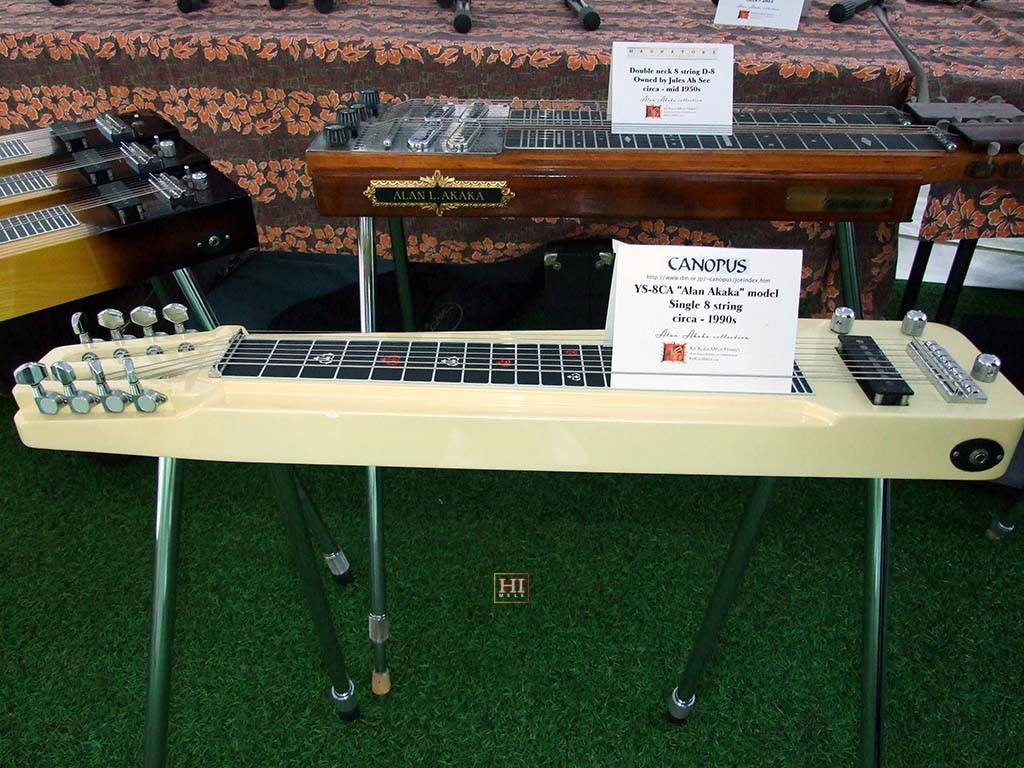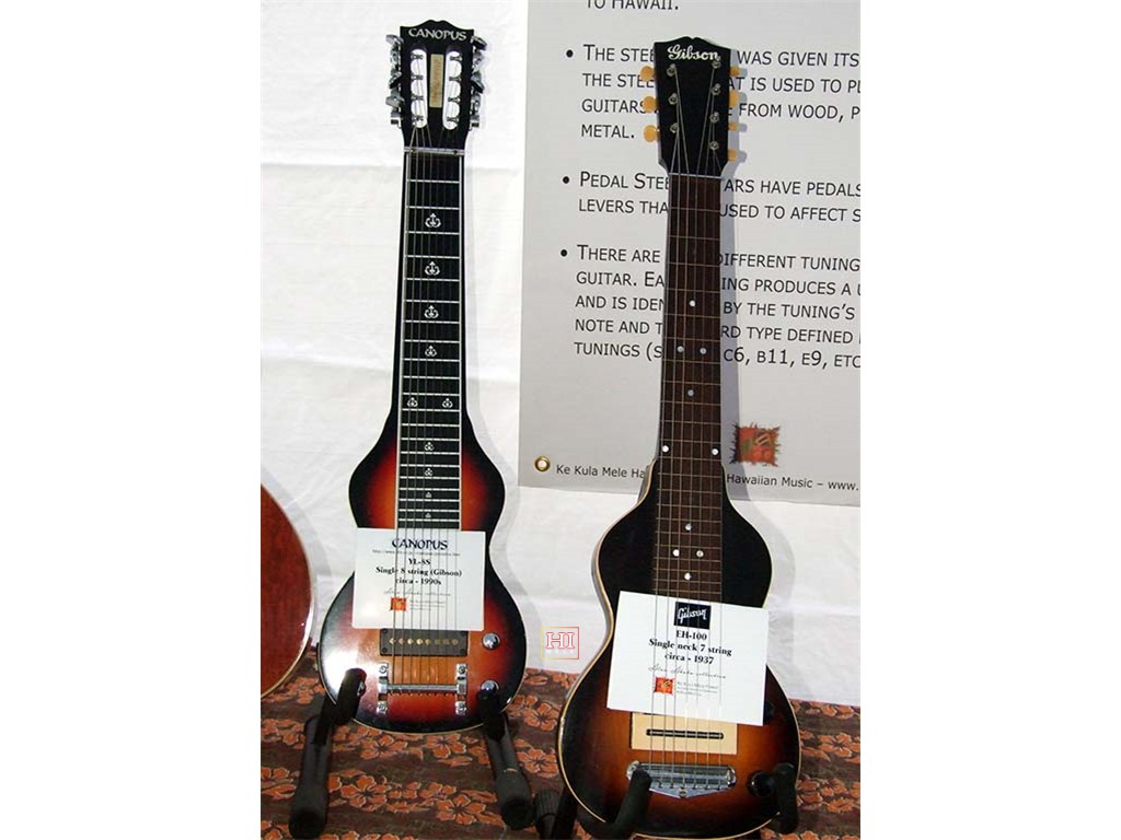 The Festival featured an exhibit of vintage and recent steel guitars. Included were guitars manufactured by Sho-Bud, Rickenbacher, Canopus, Gibson, Magnatone and Wechter, from the collections of Alan Akaka and Greg Sardinha.