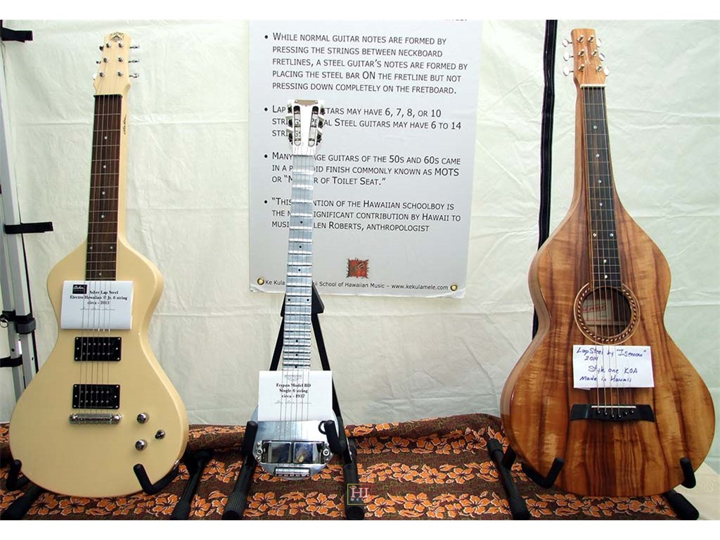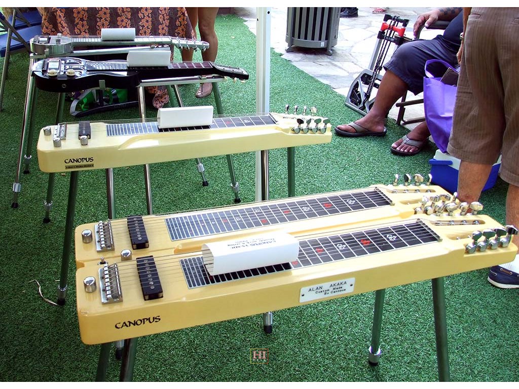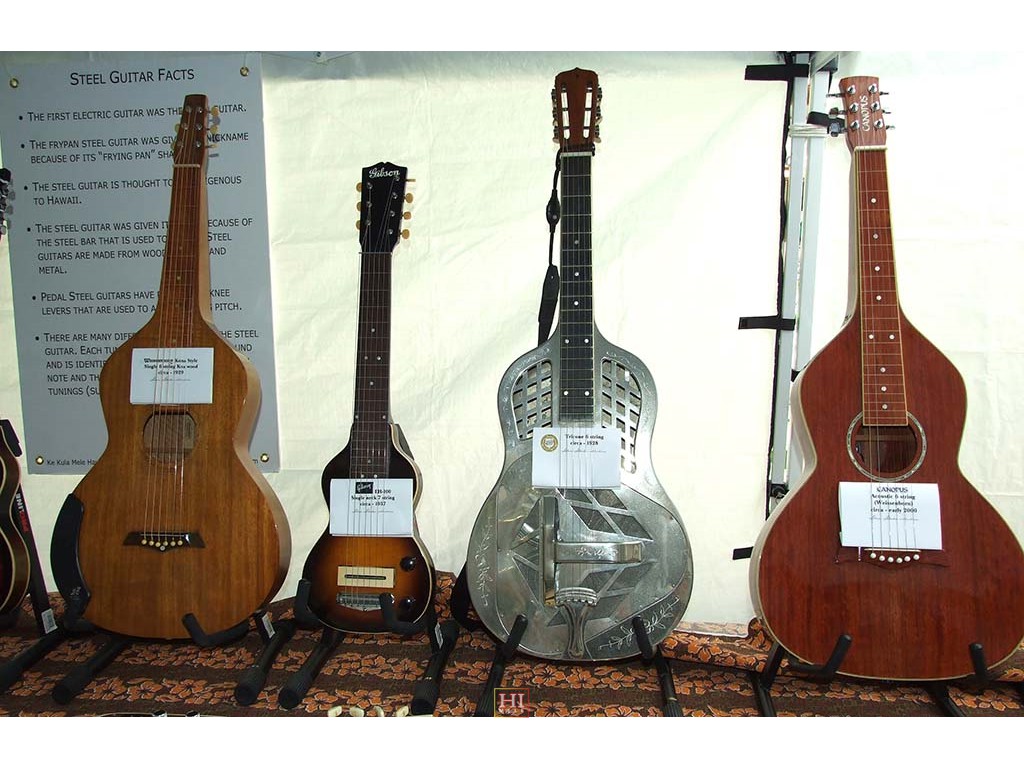 The Festival featured an exhibit of vintage and contemporary steel guitars from the Alan Akaka collection.