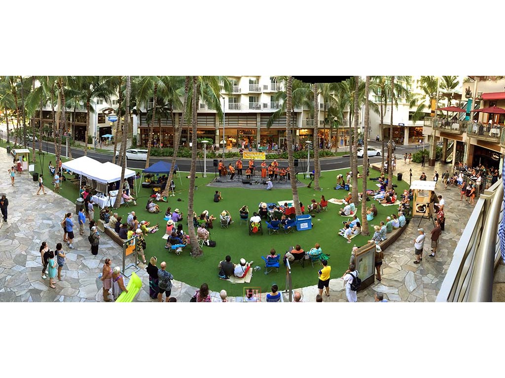 A wide angle view of the festival venue. The steel guitar exhibit tent is on the left.Back to Gallery: 2015 Waikiki Steel Guitar Festival