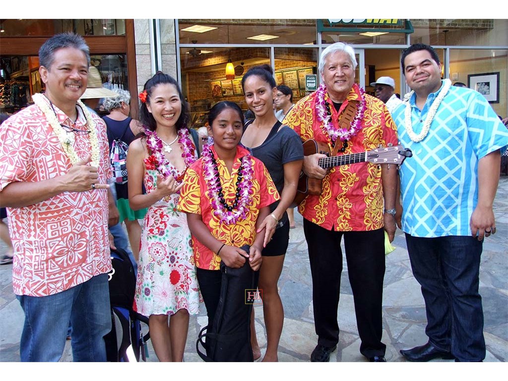 Bobby Ingano, Luana Maitland, Conchita Malaqui (Waikiki Beach Walk GM), Greg Sardinha, and Ho'oulu Cabrinha.