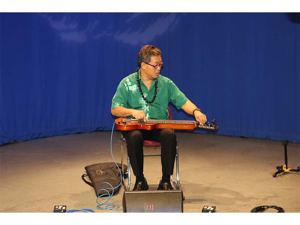 Alan Akaka checking his tuning.
