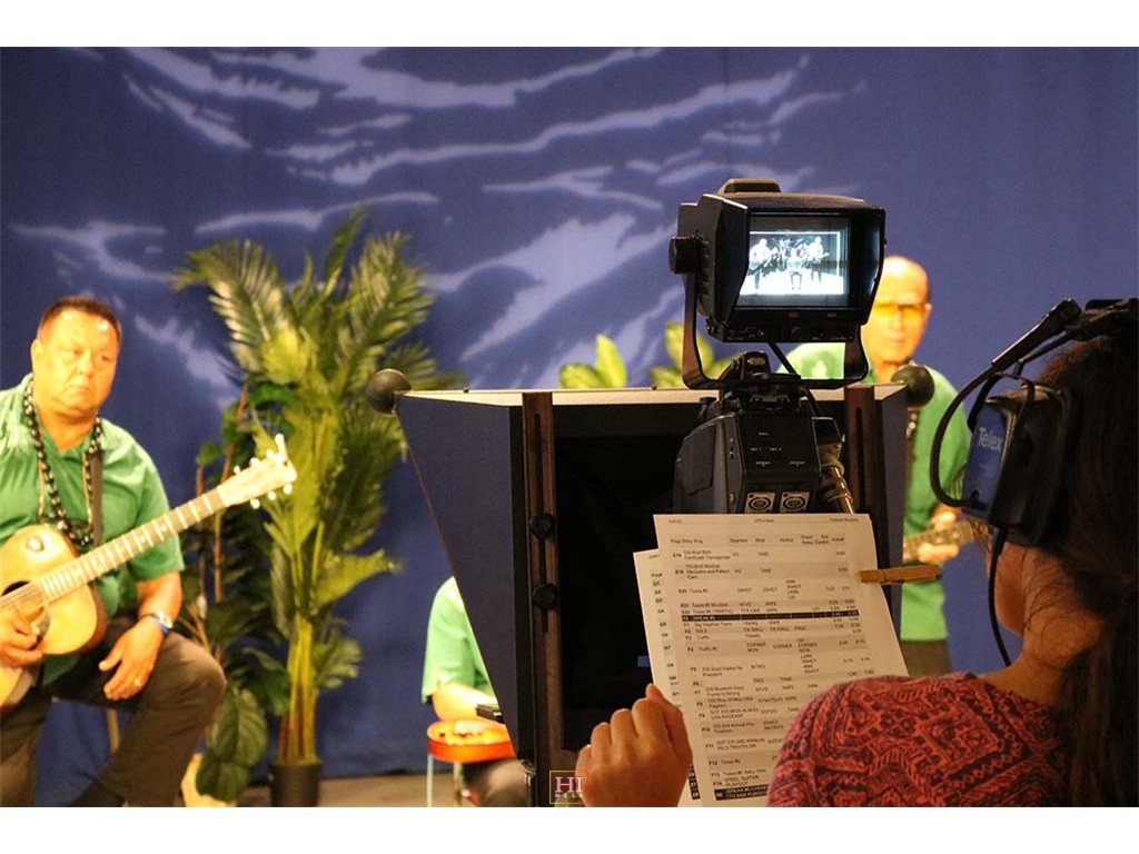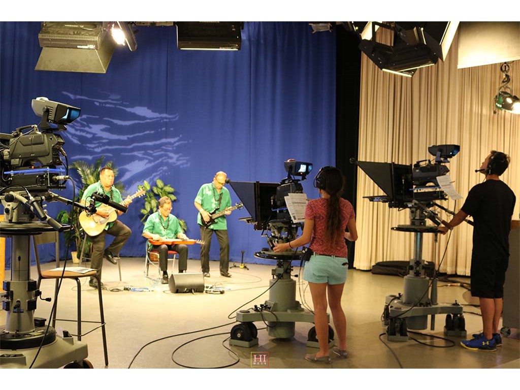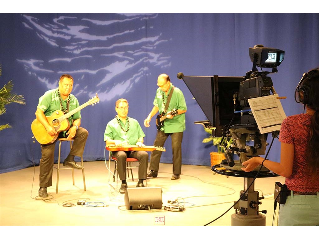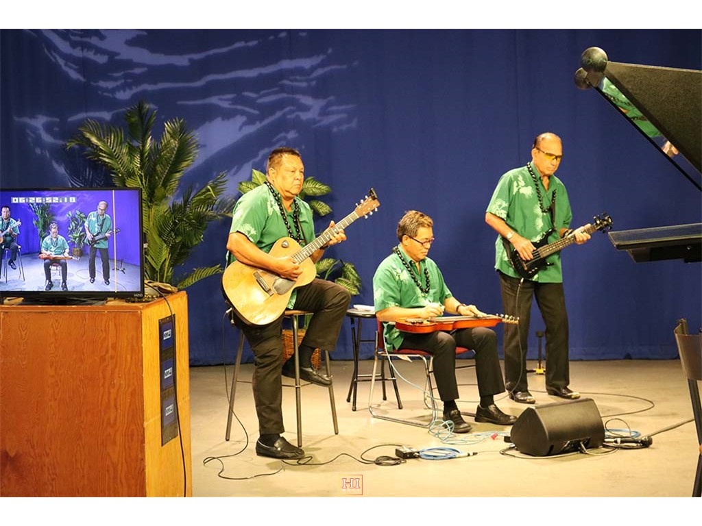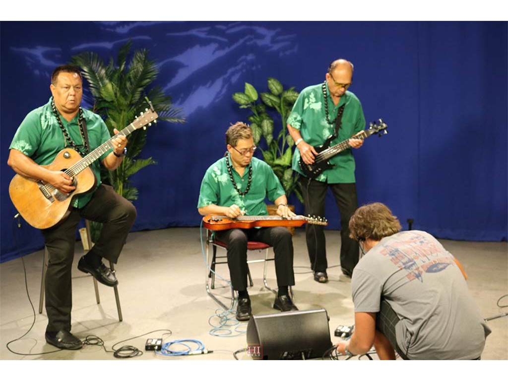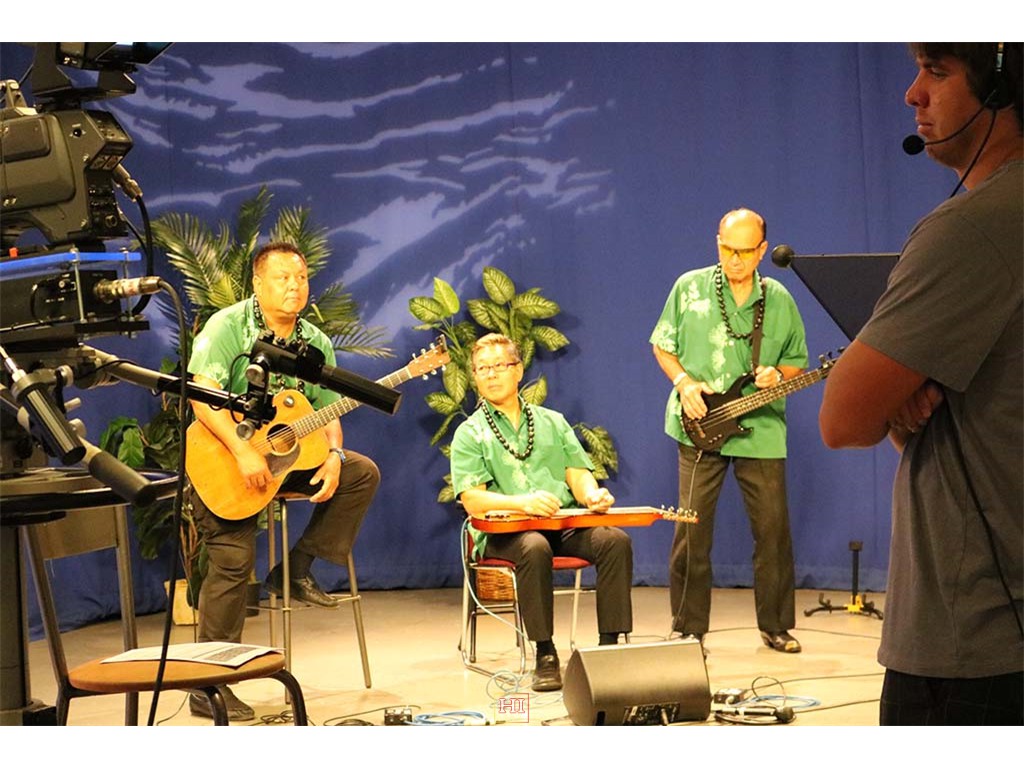 Alan Akaka and The Islanders performing a musical selection on-air.