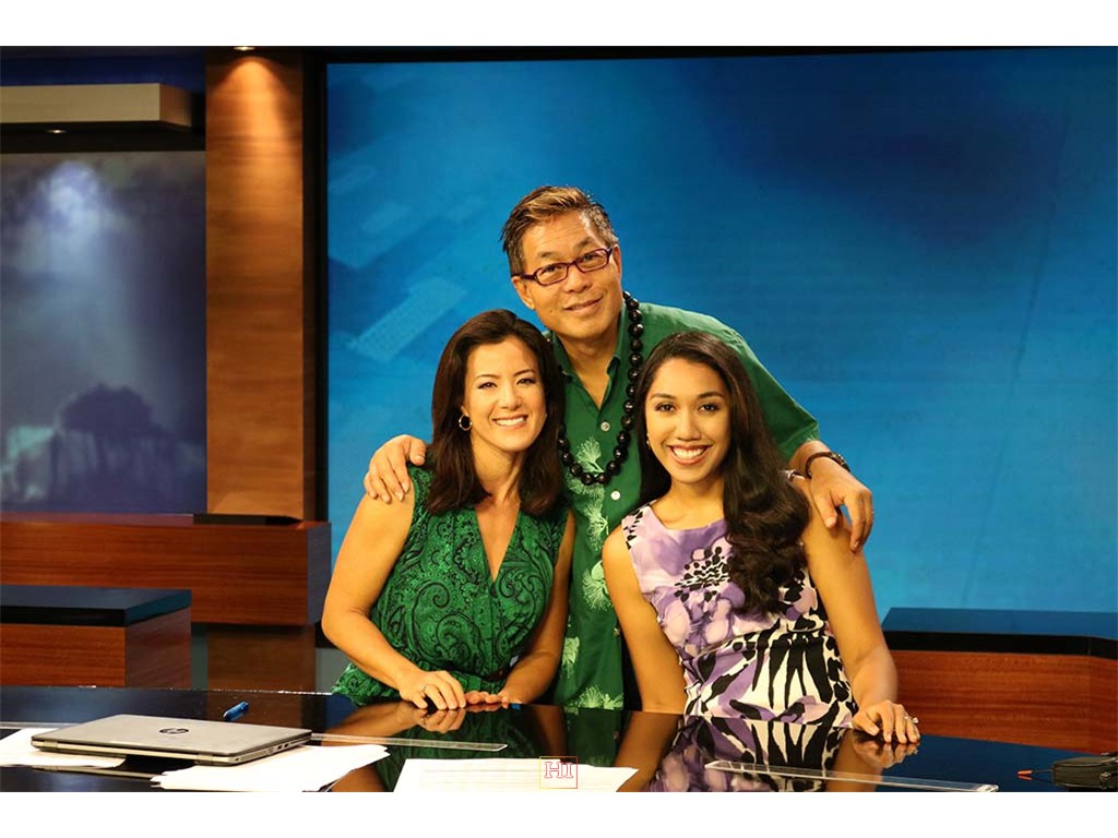 Alan Akaka with KITV News Team anchor Lara Yamada and Traffic Reporter Lei Kaholokula.